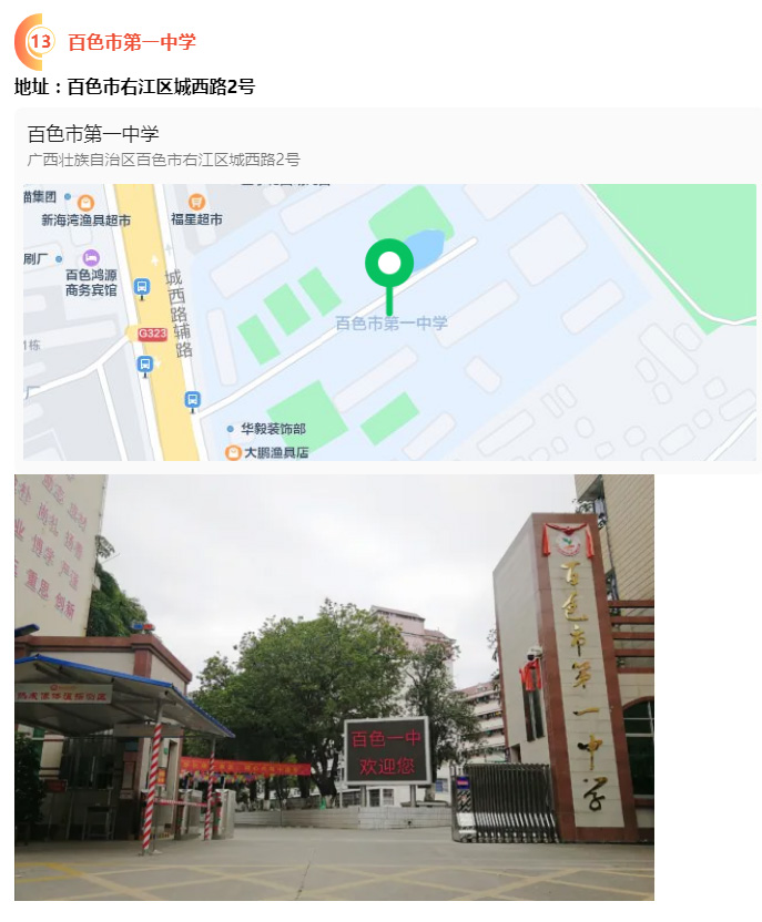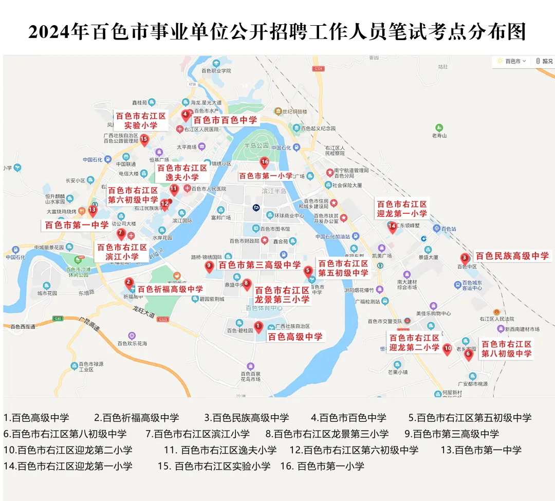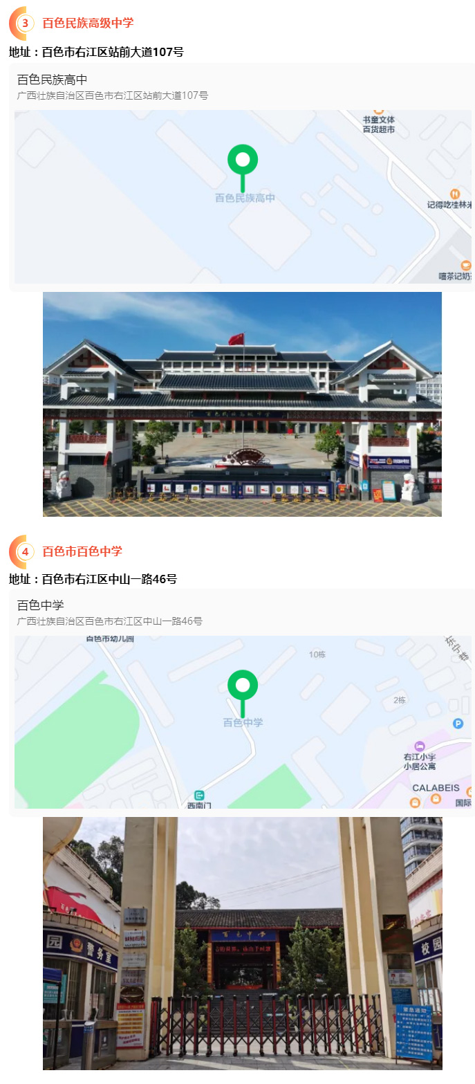 2.請?zhí)崆笆煜た键c(diǎn)地址,做好路線、住宿的安排。本次考試參考人數(shù)較多,考點(diǎn)分布分散,建議考生考前實(shí)地察看考點(diǎn),確認(rèn)考點(diǎn)入口位置,防止走錯(cuò)考點(diǎn)。請充分考慮考點(diǎn)周邊交通通行情況和停車場地容量,合理安排出行方式,預(yù)留充足時(shí)間,確保考試當(dāng)天按時(shí)到達(dá)。另外,考試期間百色市及各考點(diǎn)學(xué)校周邊的住宿比較緊張,請?zhí)崆邦A(yù)定。