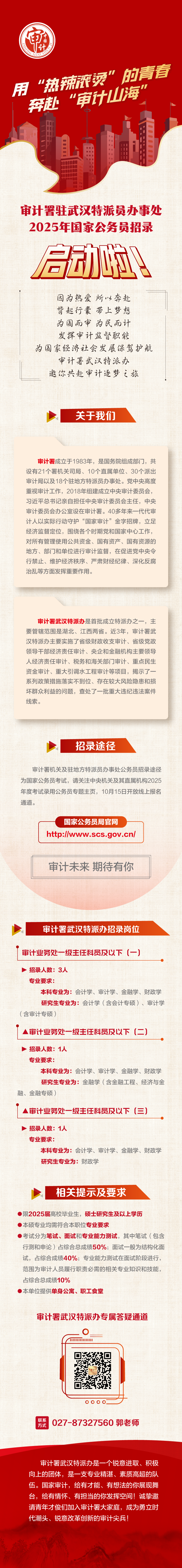 原文標(biāo)題:【現(xiàn)代服務(wù)】審計(jì)署駐武漢特派員辦事處2025年國家公務(wù)員招錄啟動!