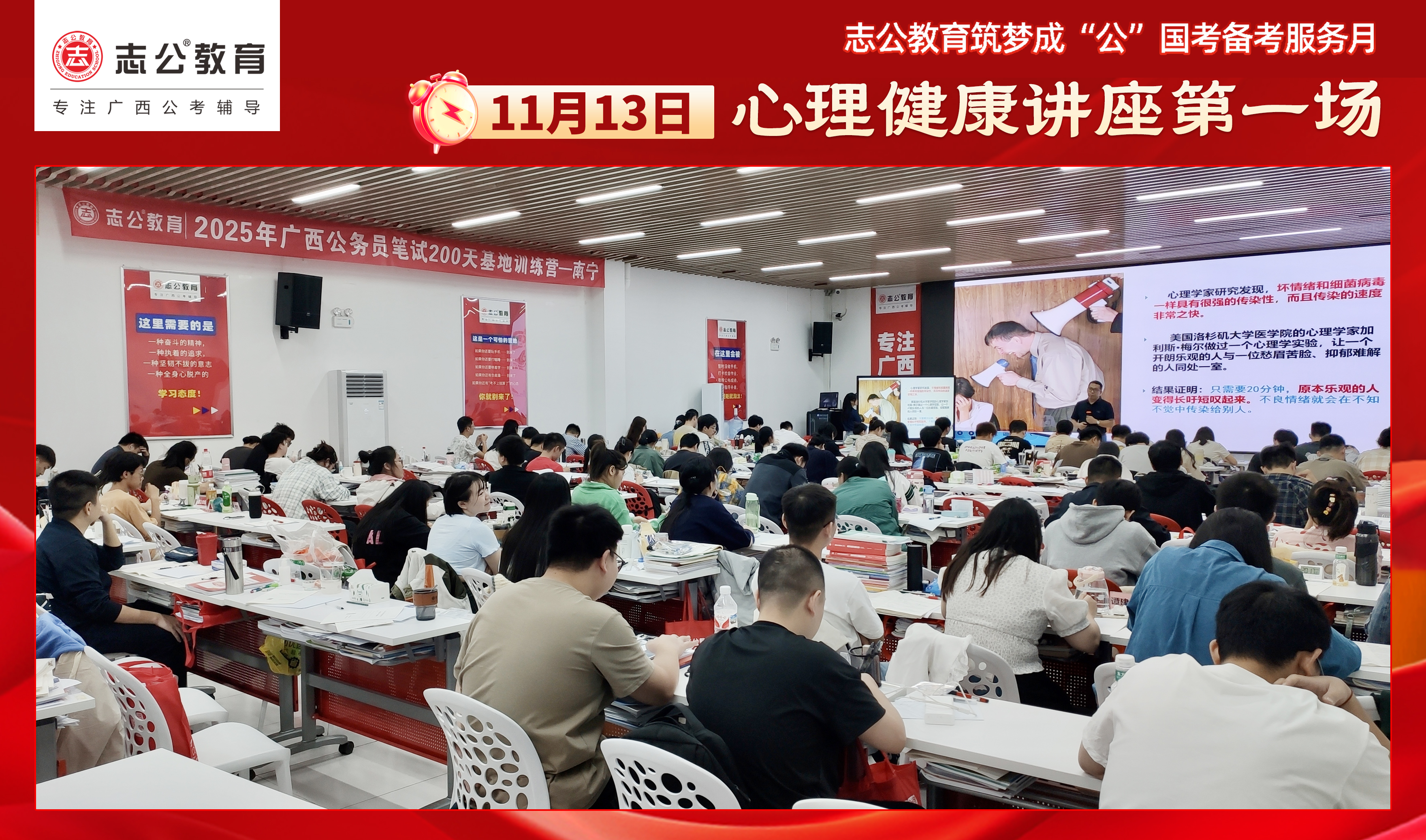 親愛的考生們,不要讓壓力成為你追夢(mèng)途中的絆腳石。在志公教育基地班,你將學(xué)會(huì)如何在國(guó)考的征程中保持從容,如何在壓力下穩(wěn)步前行。且行且看且從容,讓我們一起向著國(guó)考的勝利邁進(jìn)!第一場(chǎng)心理講座已結(jié)束,第二場(chǎng)心理講座將在11月17日舉行,期待大家以更從容自信的姿態(tài)應(yīng)對(duì)即將到來的公務(wù)員考試,加油!