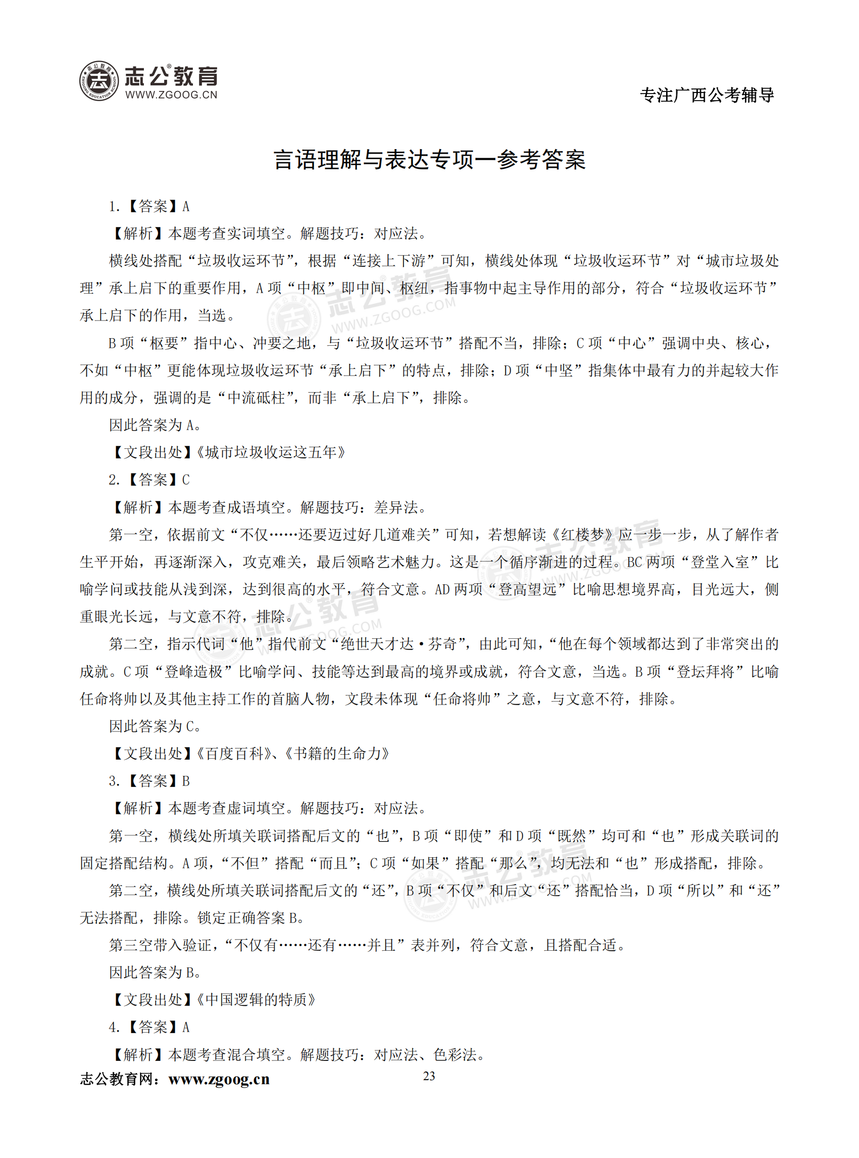【公考模塊練習(xí)】言語理解題一(答案)