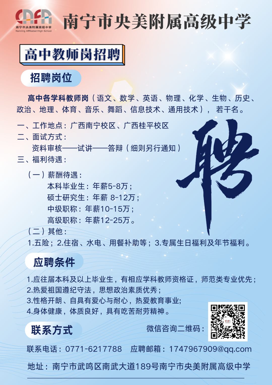 原文標(biāo)題:南寧市央美附屬高級(jí)中學(xué)2025春季學(xué)期高中教師招聘