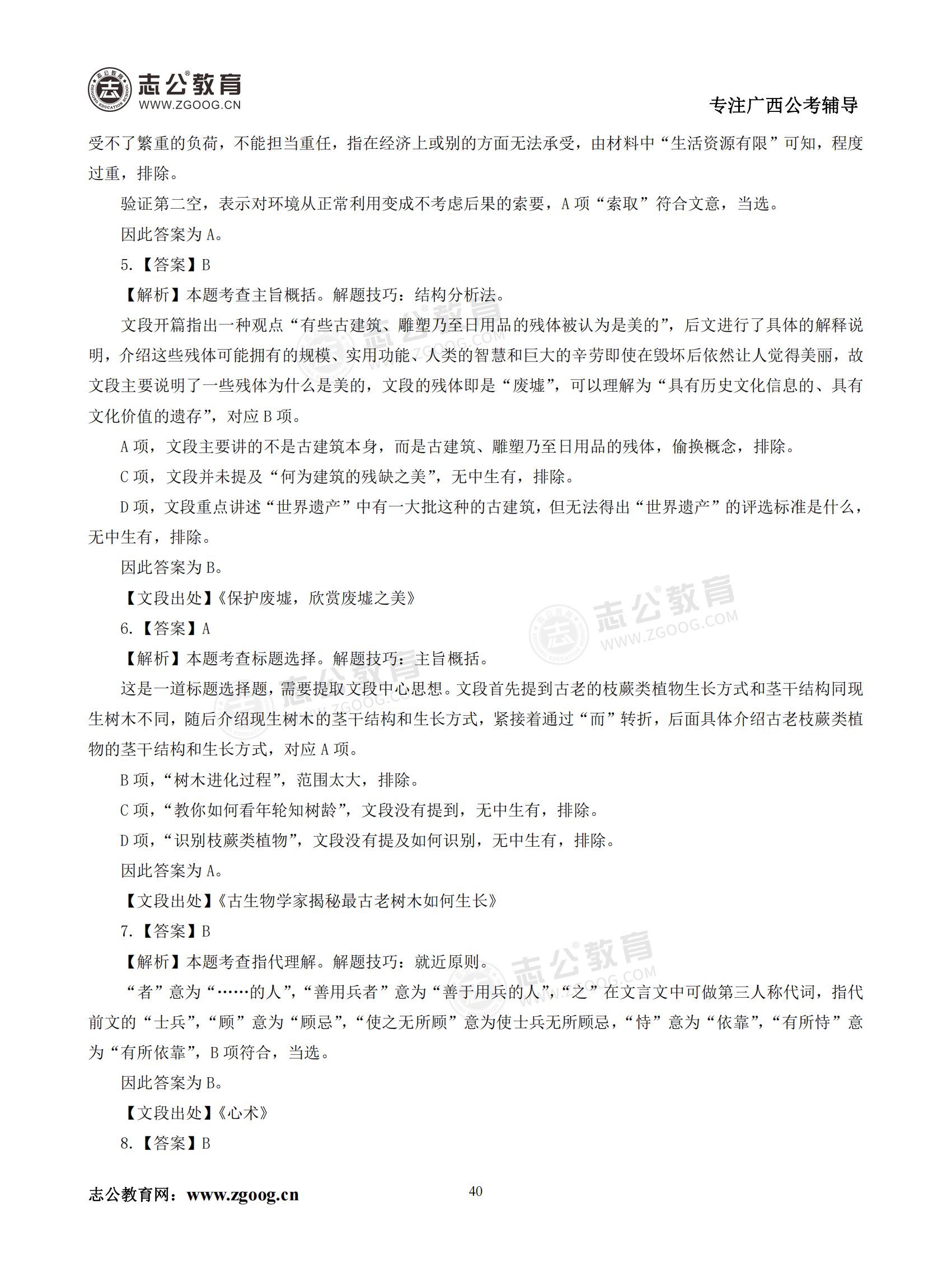 【公考模塊練習(xí)】言語理解題五(答案)