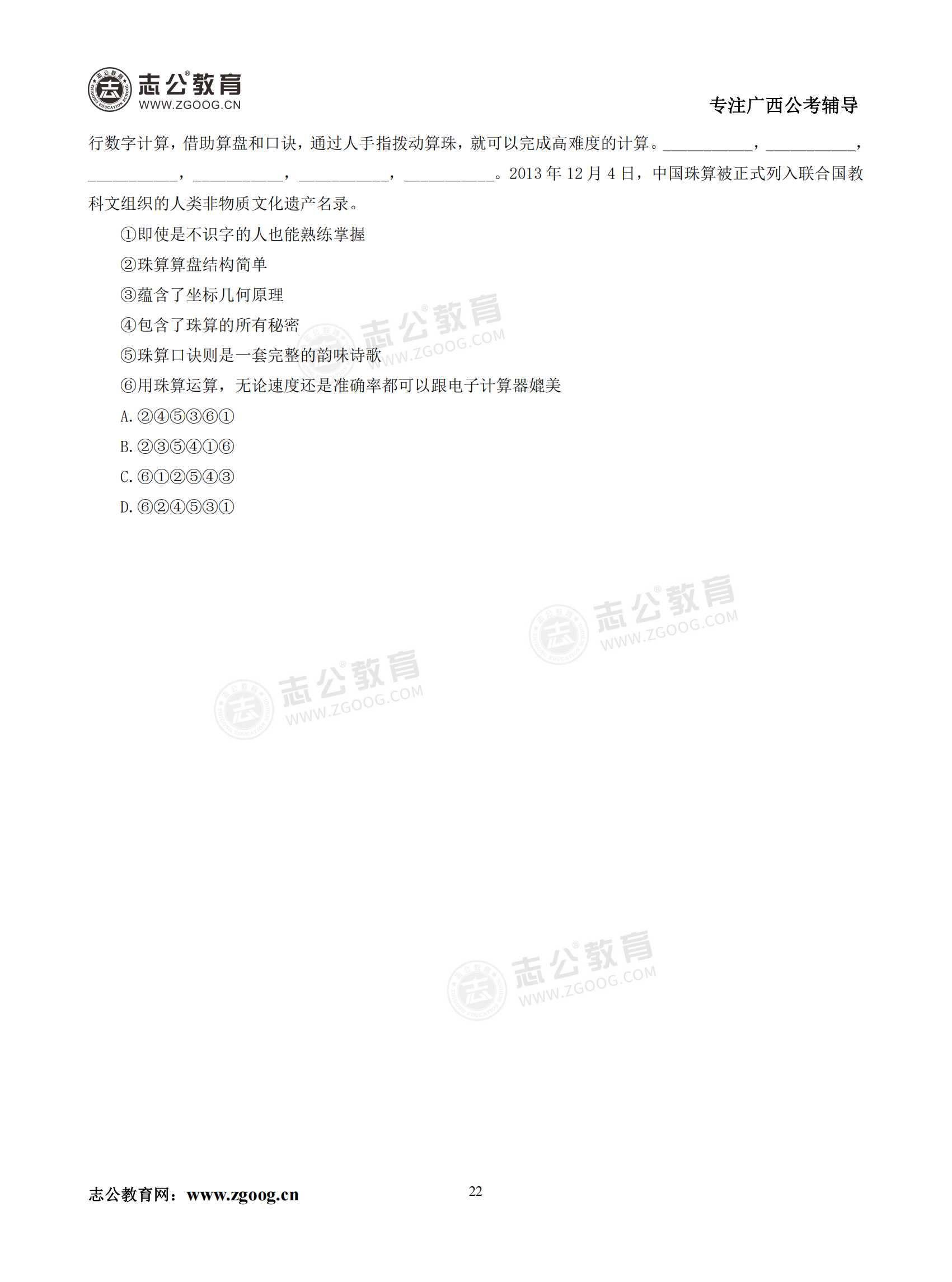 【公考模塊練習(xí)】言語(yǔ)理解題六(試題)