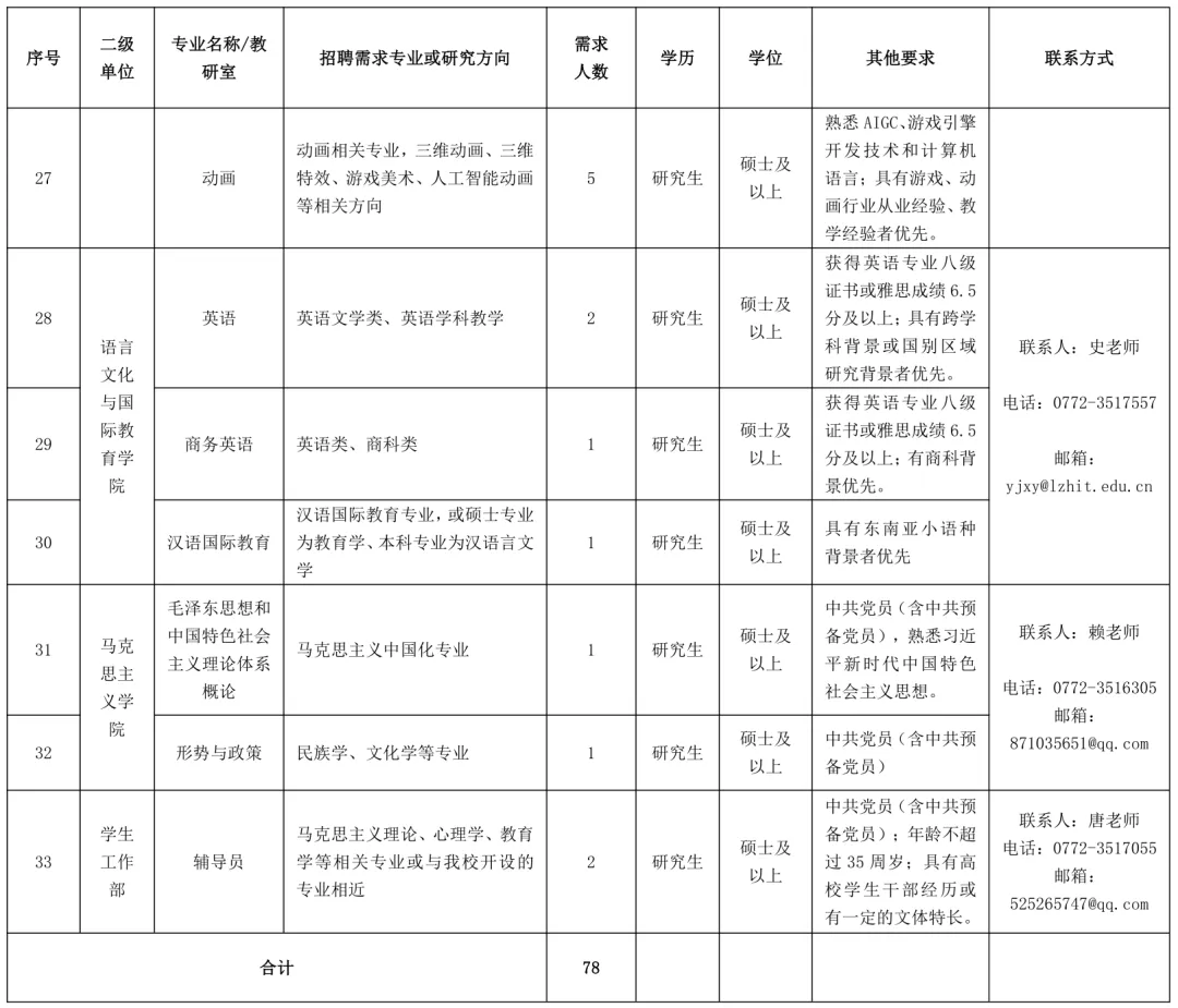 聯(lián)系地址:廣西柳州市魚峰區(qū)新柳大道99號柳州工學院人事處(科教樓1409辦公室)