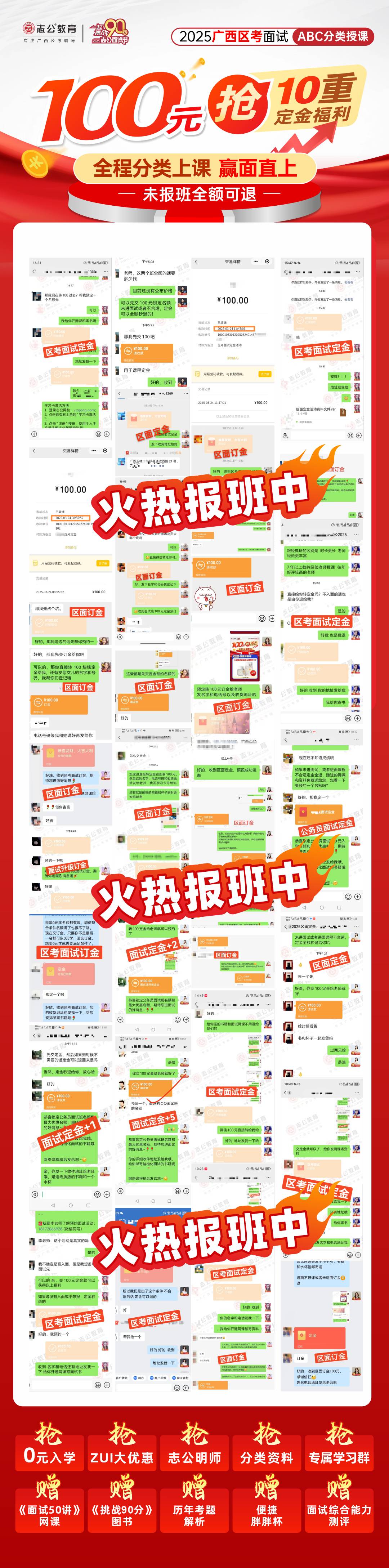 告訴大家個好消息!志公教育推出了2025年廣西區(qū)考面試ABC分類授課,現(xiàn)在只要100元就能搶到10重定金福利,聽起來是不是很誘人?