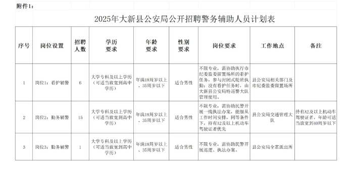 原文標題:大新縣公安局公開招聘警務輔助人員公告