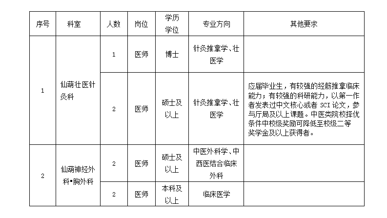 (2)博士:長(zhǎng)期招聘(醫(yī)院將根據(jù)報(bào)名情況分批次安排面試,具體以醫(yī)院通知為準(zhǔn))