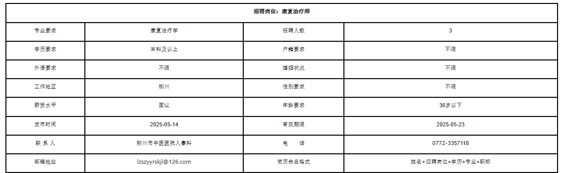 2025年廣西柳州康復(fù)治療師招聘3人