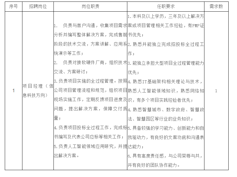 百色數(shù)字科技信息有限公司是中國—東盟信息港股份有限公司的控制子公司,是經(jīng)百色市國資委批準(zhǔn)成立的數(shù)字科技公司,定位為百色市重要的數(shù)字經(jīng)濟(jì)企業(yè),公司立足百色,面向全市,常駐辦公地址在百色市政務(wù)服務(wù)中心三樓。公司主營業(yè)務(wù)涵蓋產(chǎn)業(yè)互聯(lián)網(wǎng)、政企數(shù)字化和信創(chuàng)安全服務(wù)三大領(lǐng)域,根據(jù)公司發(fā)展需要,現(xiàn)面向社會公開招聘項(xiàng)目經(jīng)理崗位人員,具體公告如下: