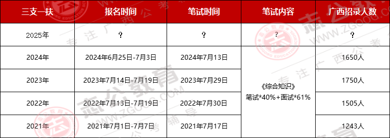 廣西什么時(shí)候出?正值畢業(yè)季,想必很多人想知道,根據(jù)下方圖片,廣西歷年三支一扶考試節(jié)點(diǎn)可知,三支一扶在六月底發(fā)公告,發(fā)布公告第二天開(kāi)始報(bào)名,2024年招錄1650人,2023年招錄1750人,小志猜測(cè),今年也就是2025年預(yù)計(jì)1700人。