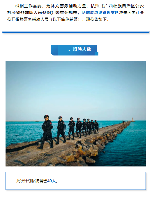 防城港邊境管理支隊(duì)公開(kāi)招聘警務(wù)輔助人員40人