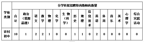 德保縣2025年計劃招聘初中特崗教師10名,具體科目計劃招聘人數(shù)詳見下表: