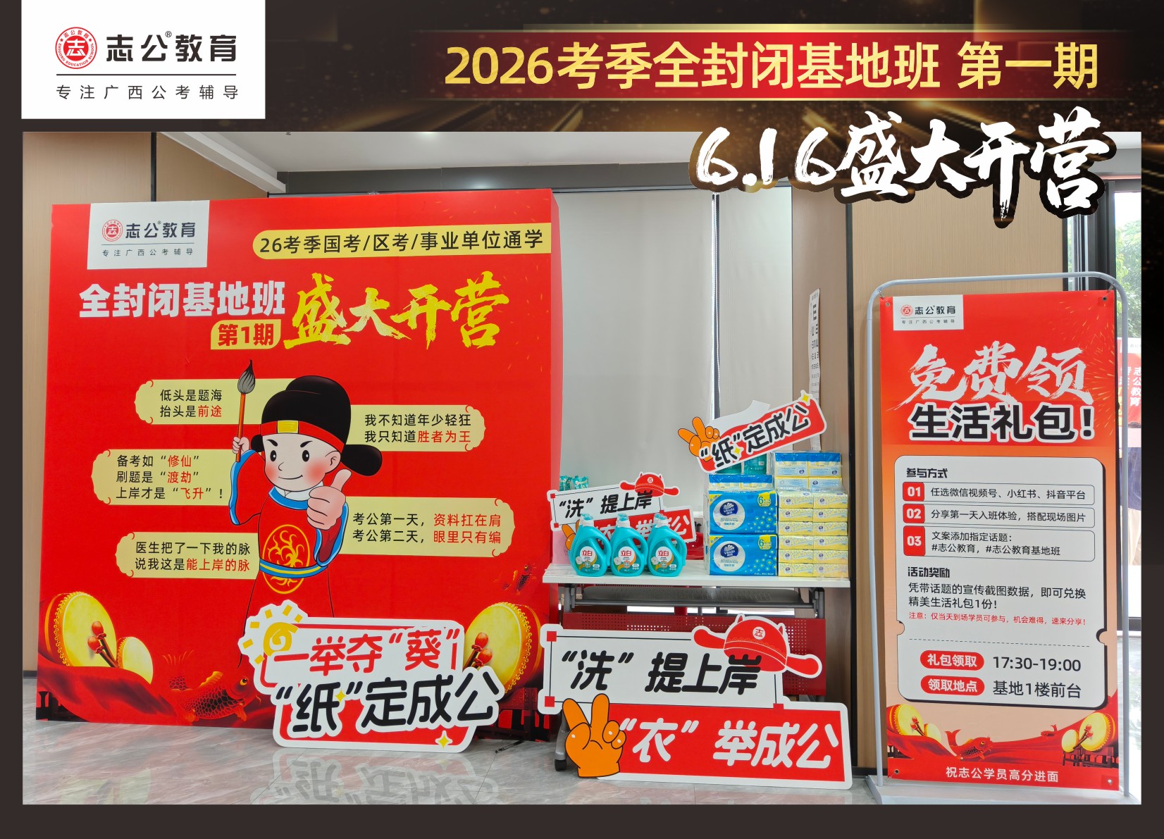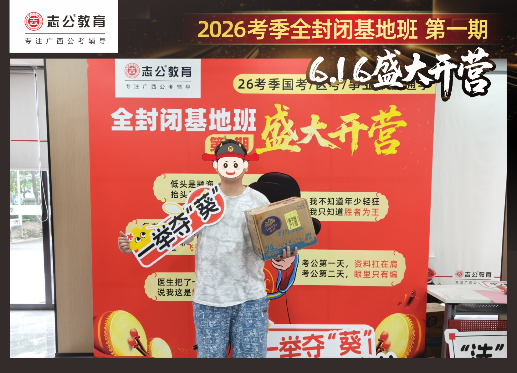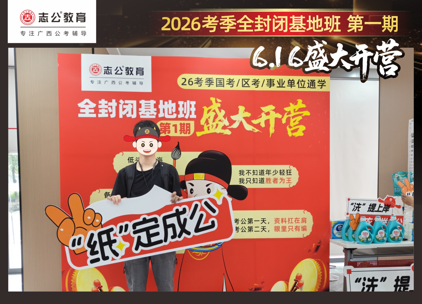 由于這段時(shí)間受臺(tái)風(fēng)影響,南寧迎來下雨天,但學(xué)員們滿懷先一步備考,快一步成功圓夢的滿滿炙熱信心,早早就在志公教育(中關(guān)村)全封閉基地前臺(tái)等候,6月16日,志公教育26考季全封閉基地班第1期的學(xué)員們齊聚一堂,正式開啟他們的公考備戰(zhàn)之旅。簽到環(huán)節(jié)作為基地班課程的第一站,不僅是對(duì)學(xué)員們的歡迎儀式,更是他們邁向夢想的第一步。
