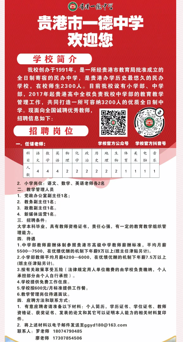 原文標(biāo)題:貴港市一德中學(xué)招聘簡章