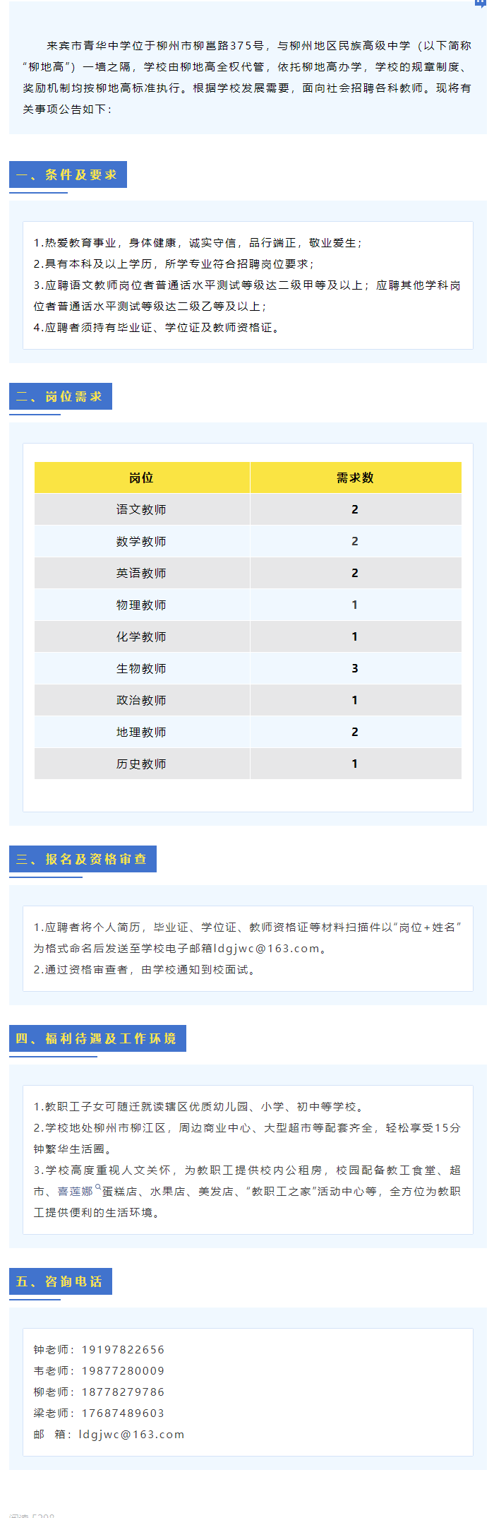 2025年柳州地區(qū)民族高級中學招聘教師若干人