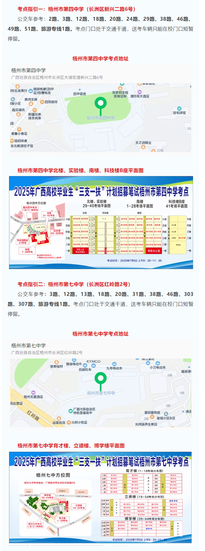 梧州市2025年“三支一扶”計劃招募筆試于7月5日進行,今年共計劃招募43個崗位60人,參加考試考生2546人,共設2考點,85個考場。為確保廣大考生順利參考,現將有關事項提示如下: