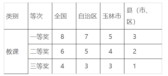 (5)現(xiàn)場教課比賽獲獎:參加教育行政部門或業(yè)務(wù)部門逐級選拔的縣以上的教課比賽獲得一、二、三等獎勵給予計分。此項最高不超過10分。具體計分如下: