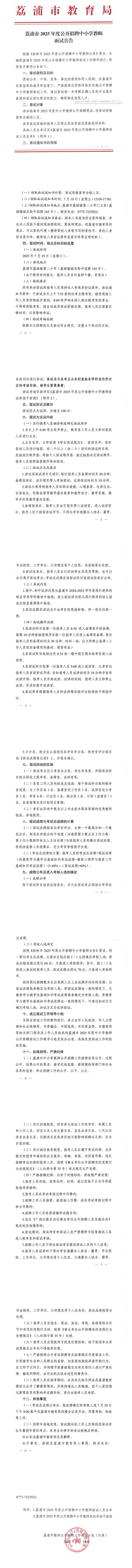 荔浦市2025年度公開招聘中小學(xué)教師面試公告