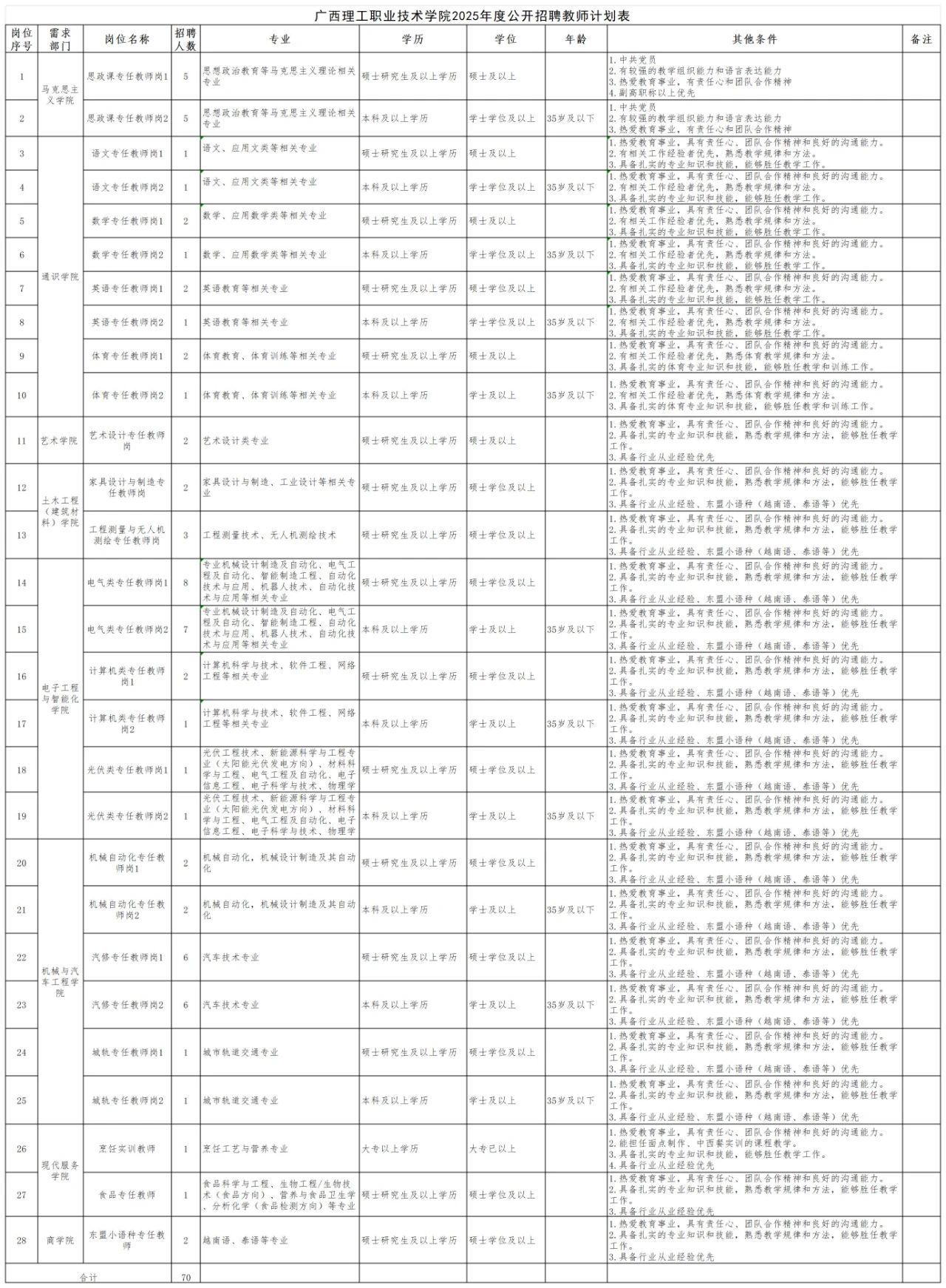 詳見《廣西理工職業(yè)技術(shù)學(xué)院2025年度公開招聘教師計劃表》