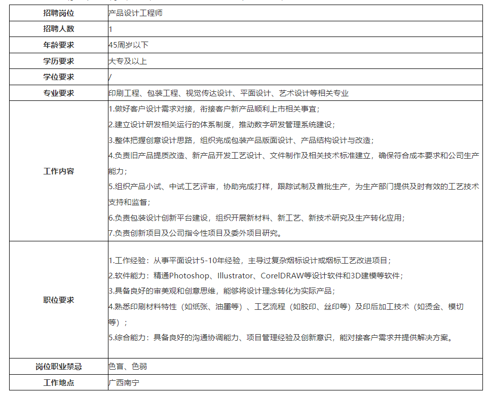 公司以創(chuàng)新引領(lǐng)發(fā)展,公司先后獲得“全國印刷示范企業(yè)”、“中國煙標(biāo)印刷行業(yè)最具實(shí)力十大領(lǐng)軍企業(yè)”、“廣西制造業(yè)企業(yè)50強(qiáng)”,連續(xù)三年獲得“廣西優(yōu)秀企業(yè)”、“賀州市億元納稅企業(yè)”等榮譽(yù)稱號。公司秉承以人為本的理念,尊重人才、重視人才,開展員工職業(yè)發(fā)展規(guī)劃,為每一位員工提供廣闊的發(fā)展機(jī)會(huì),充分發(fā)揮員工自主性和創(chuàng)造性。根據(jù)公司發(fā)展需要,現(xiàn)面向社會(huì)公開招聘員工。具體事項(xiàng)公告如下: