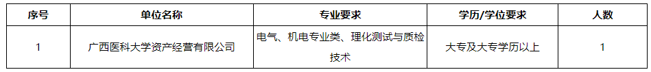 2025年廣西醫(yī)科大學(xué)資產(chǎn)經(jīng)營(yíng)有限公司工勤崗工作人員招聘1人