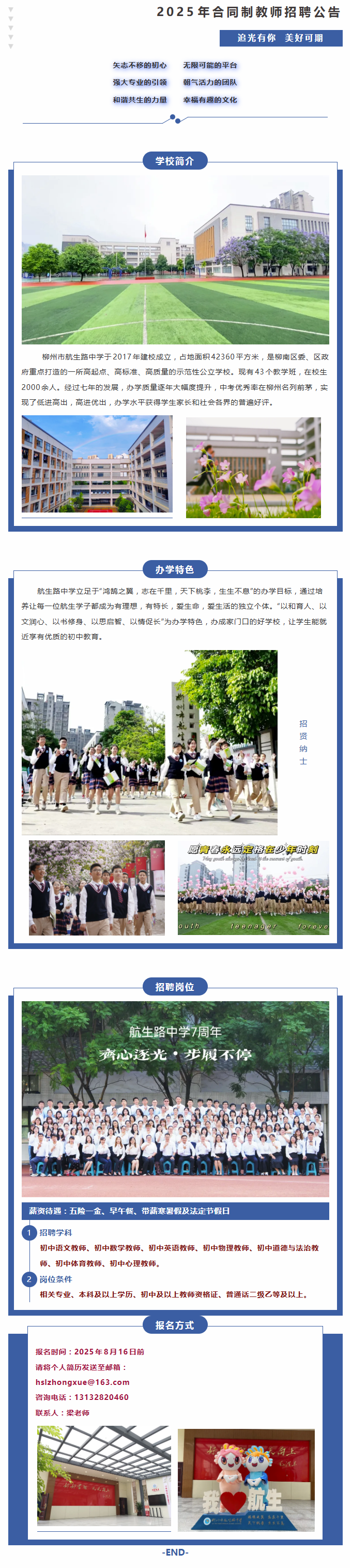 2025年秋季學(xué)期柳州市航生路中學(xué)合同制教師招聘公告