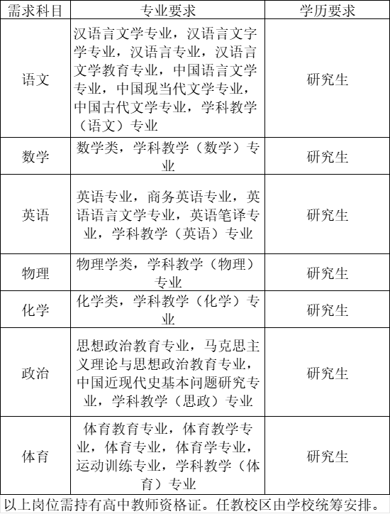 根據(jù)學(xué)校工作要求,現(xiàn)面向全社會(huì)招聘代課教師,有關(guān)事項(xiàng)公告如下:?崗位需求