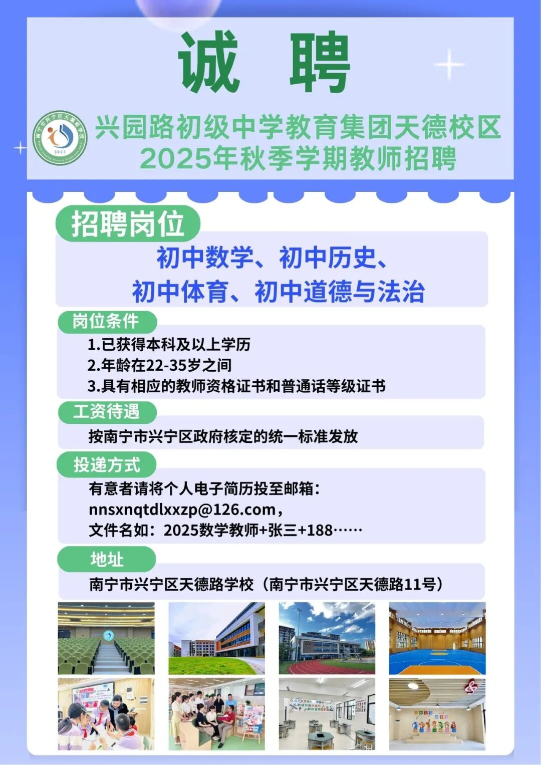 2025年南寧市興園路初級中學(xué)教育集團天德校區(qū)秋季學(xué)期教師招聘