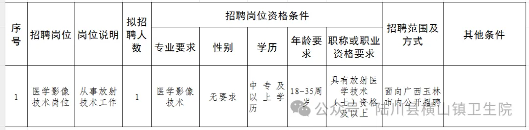 2025年玉林陸川縣橫山鎮(zhèn)衛(wèi)生院招聘編外人員公告