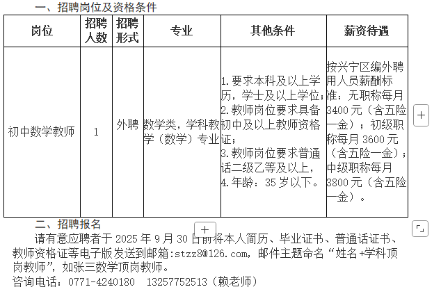 2025年南寧市興寧區(qū)三塘鎮(zhèn)四塘中學秋季學期招聘1人