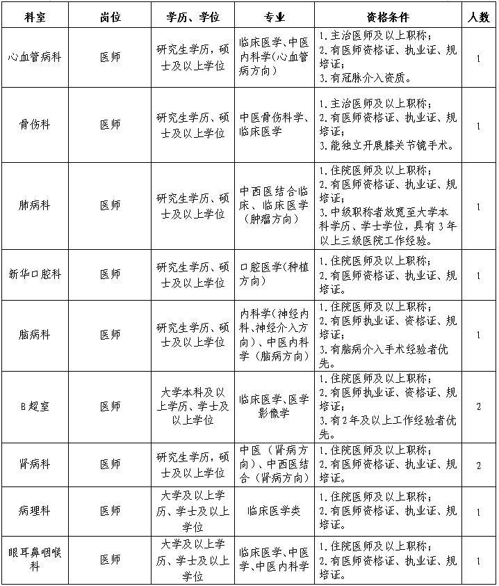 根據(jù)醫(yī)院高質量發(fā)展需要,我院誠聘衛(wèi)生醫(yī)療相關專業(yè)領域的人才,歡迎投簡歷應聘。