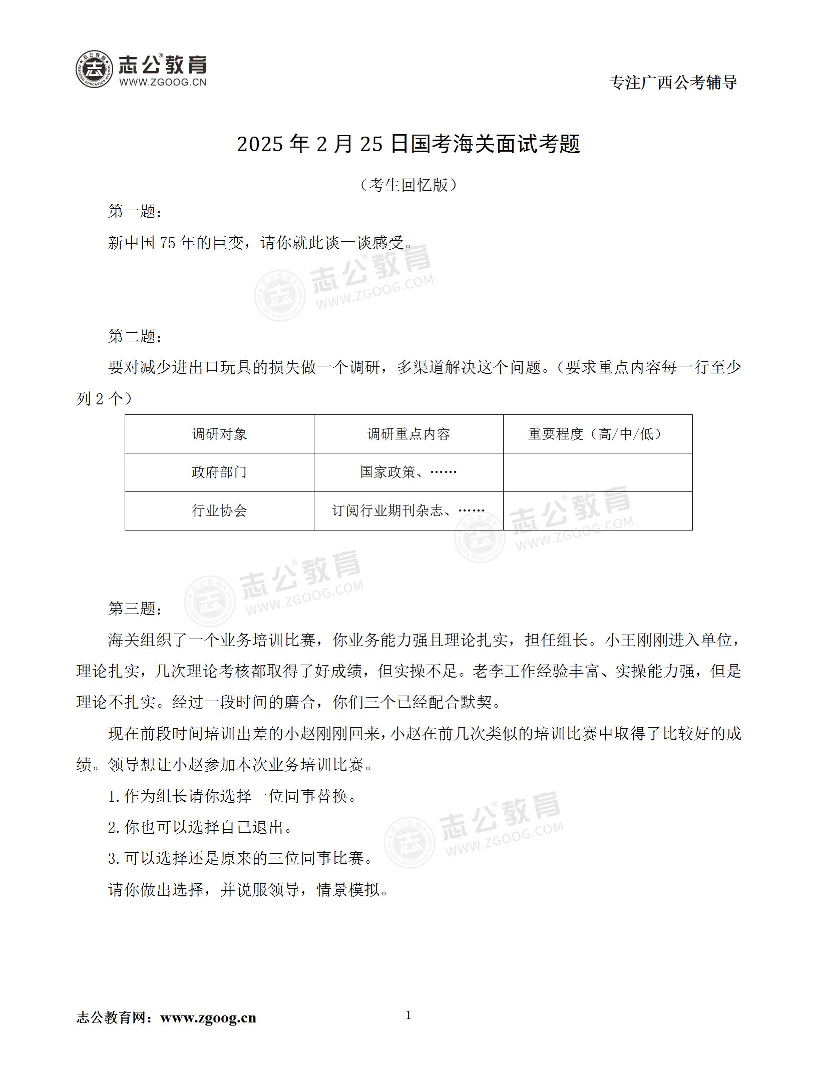 2025年國考海關(guān)2月25日面試考題(考生回憶版)