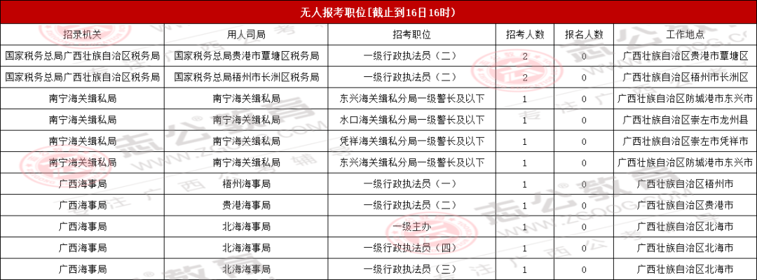 廣西各地市各職位報名動態(tài)情況匯總