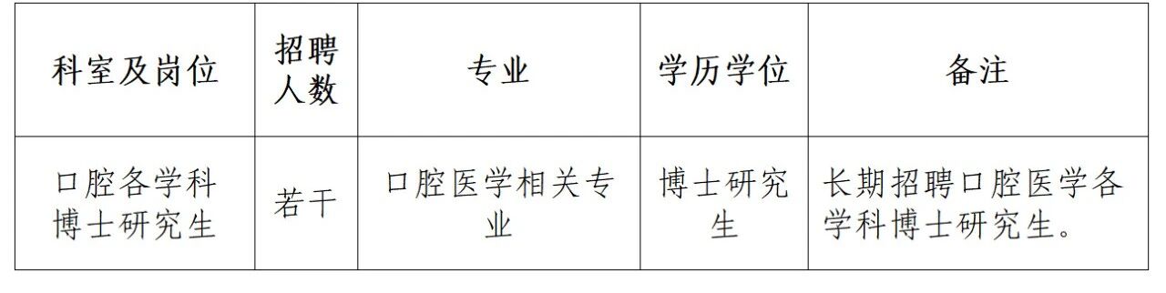 人才條件:35歲以下,口腔醫(yī)學(xué)相關(guān)專(zhuān)業(yè)研究生畢業(yè),獲碩士學(xué)位。
