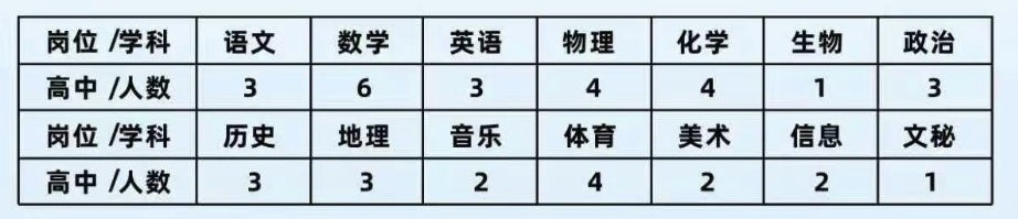 學校于2023年9月1日正式開學,現(xiàn)有30個行政班,一千余名學生,專任教師128人,發(fā)展勢頭強勁。為適應學校未來發(fā)展需要,特面向全國師范類畢業(yè)生擇優(yōu)招聘青年教師若干,詳情如下:
