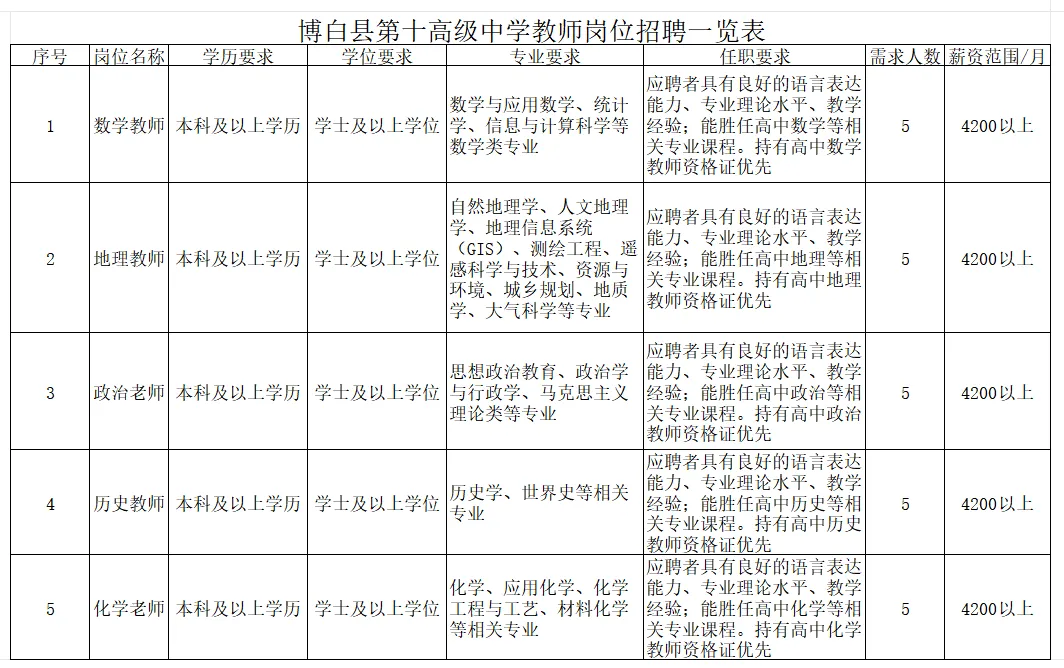 2026年博白縣第十高級中學教師招聘啟事