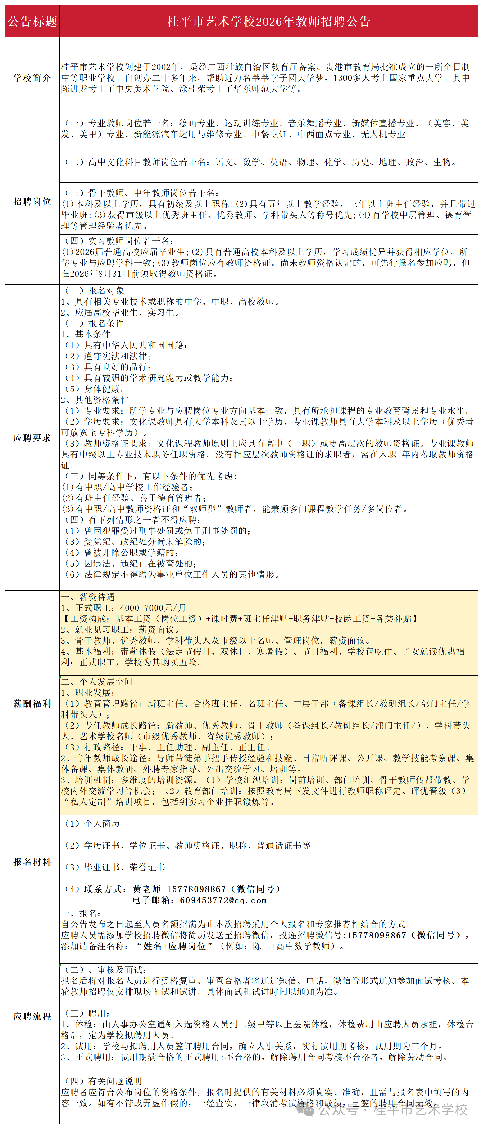 2026年春季貴港桂平市藝術(shù)學(xué)校學(xué)期教師招聘若干人