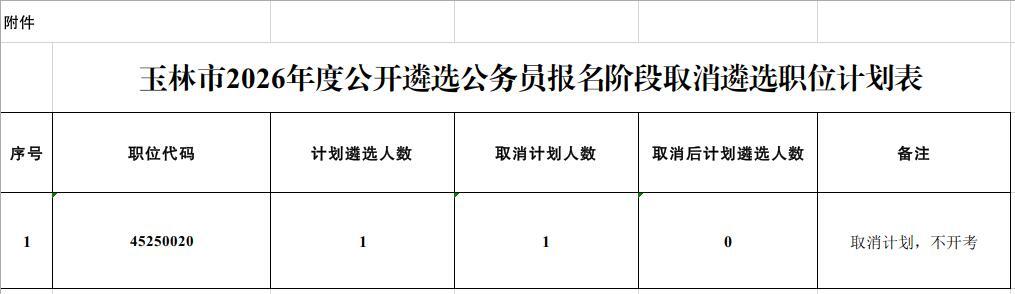 附件:玉林市2026年度公開遴選公務員報名階段取消遴選職位計劃表