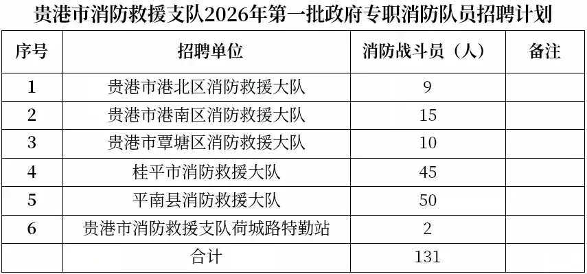 為滿足貴港市社會經(jīng)濟發(fā)展對消防力量的需求,有效提升社會災害防控能力,貴港市消防救援支隊按照德才兼?zhèn)浜?ldquo;公開公正、平等自愿、競爭擇優(yōu)”的原則,面向社會公開招錄131名政府專職消防員。現(xiàn)將有關(guān)事項公告如下: