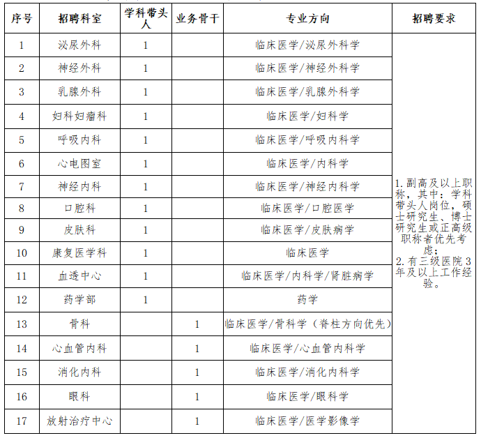 學科帶頭人或業(yè)務骨干崗位