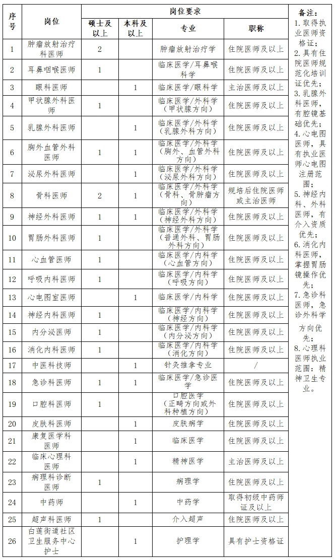 1.依據(jù)國家和學校相關規(guī)定享受相應的待遇和工作條件,符合醫(yī)院人才引進政策的享受相應等次(博士、學科帶頭人、業(yè)務骨干、碩士研究生、急需崗位本科畢業(yè)生)的待遇,含安家費、科研啟動費、租房補貼等,具體情況以人事科解釋為準。