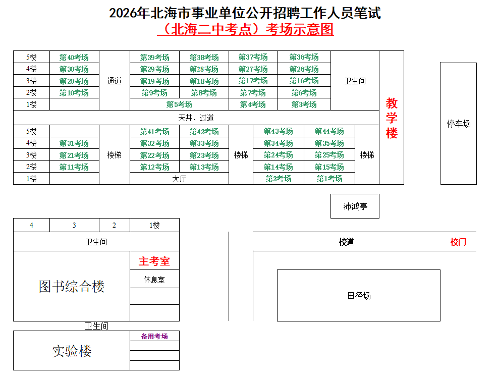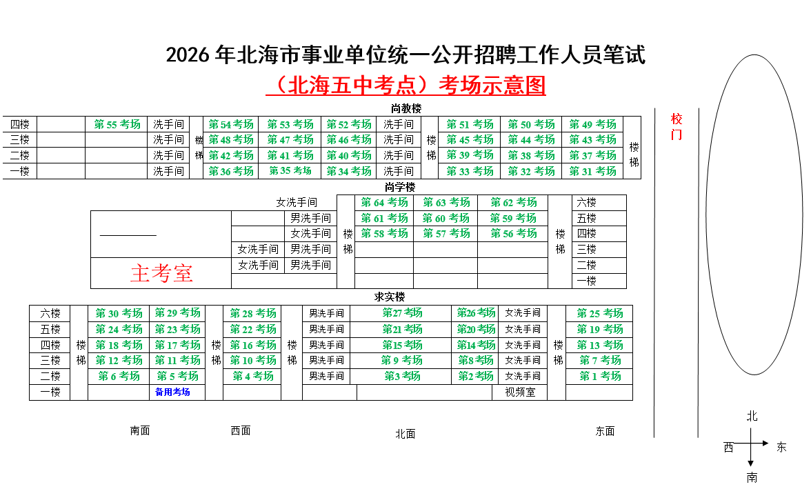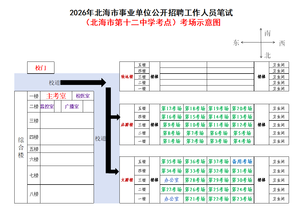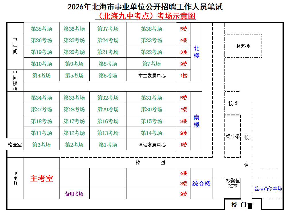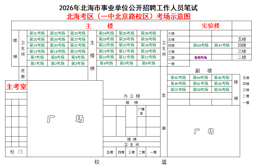 (一)3月28日進行綜合管理類(A類)考試,北海市共設(shè)一個考點,考點考場布置為:
