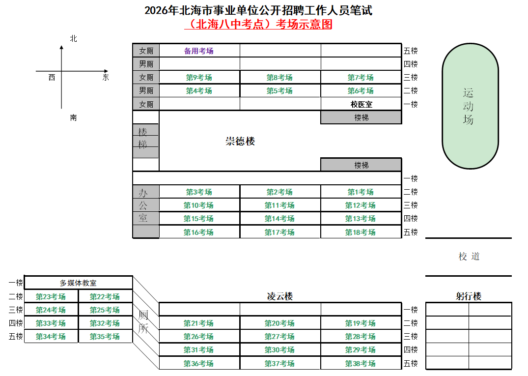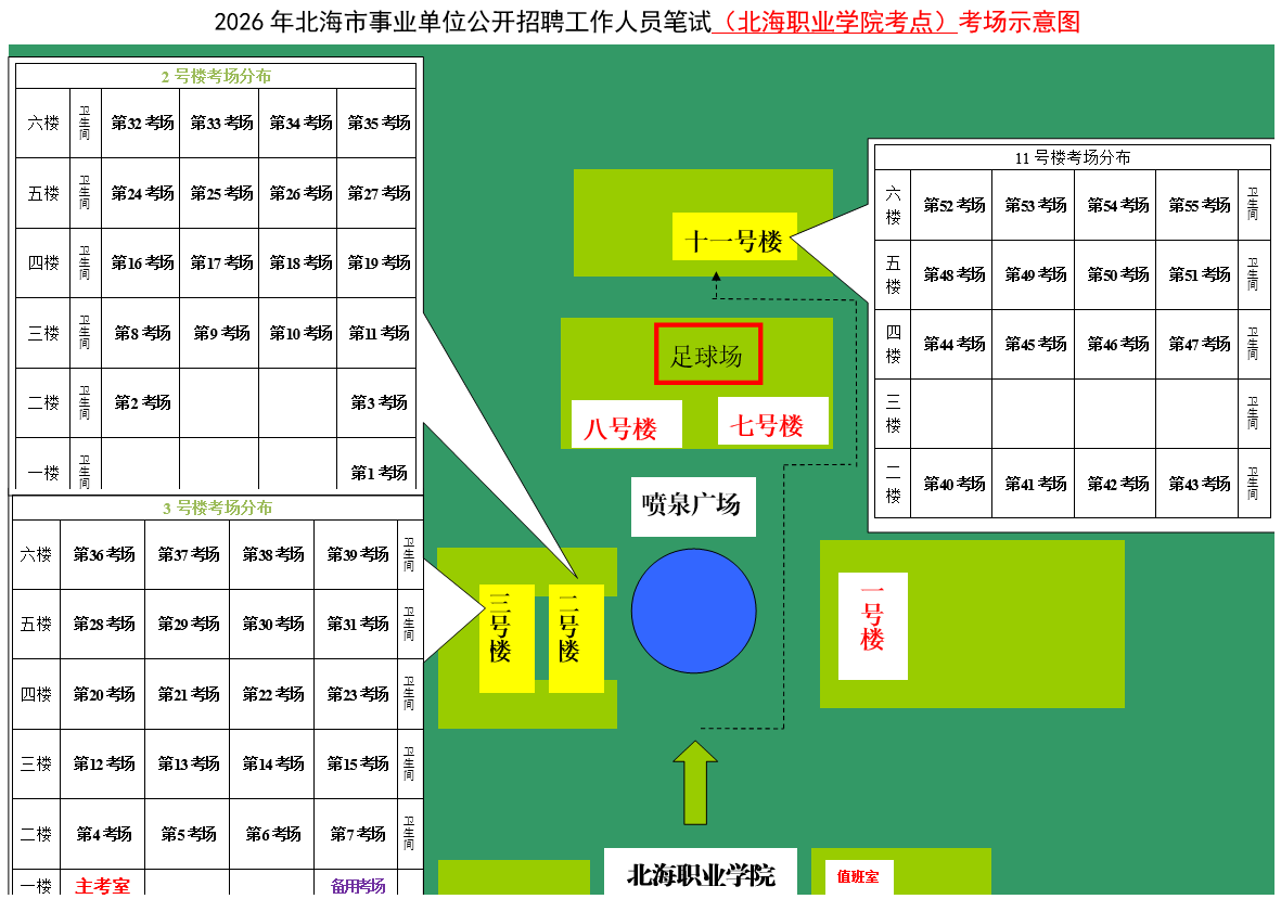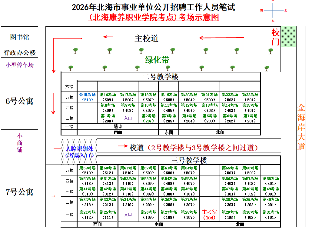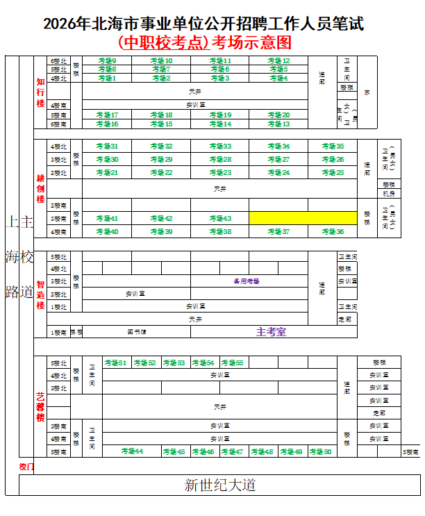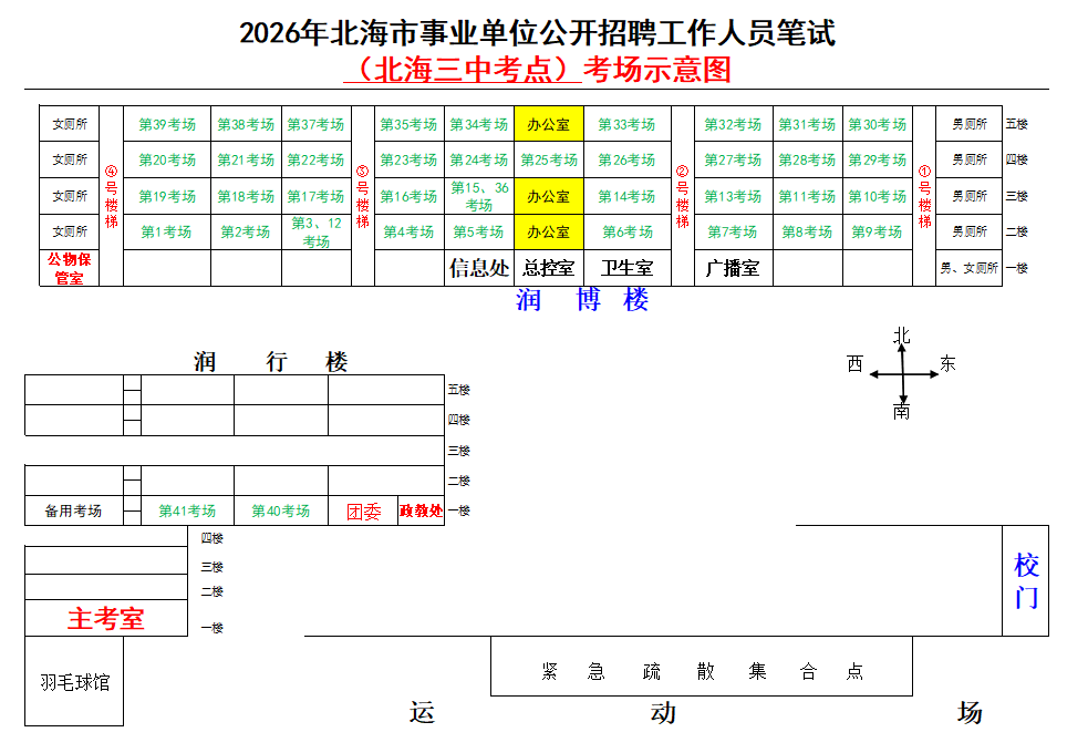 (一)3月28日進行綜合管理類(A類)考試,北海市共設(shè)一個考點,考點考場布置為: