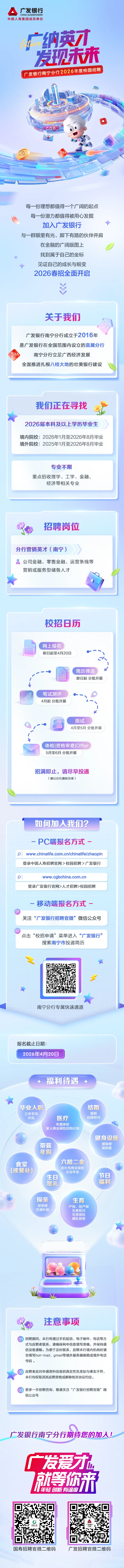 原文標(biāo)題:廣發(fā)銀行南寧分行2026年度春季校園招聘公告