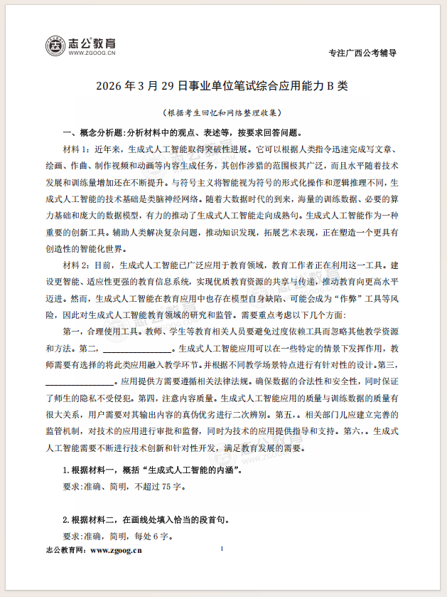 志公教育第一時間整理了考題及解析