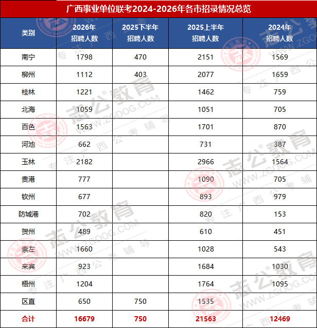 2026廣西事考招錄16679人,較2025上半年廣西事業(yè)單位招錄縮招了4884人;招錄波動(dòng)大、但是機(jī)會(huì)集中,醫(yī)療E類(lèi)、綜合A 類(lèi)為招錄主力;廣西區(qū)直、南寧、桂林等崗位競(jìng)爭(zhēng)激烈,是應(yīng)屆生與社會(huì)考生圓夢(mèng)重要賽道。